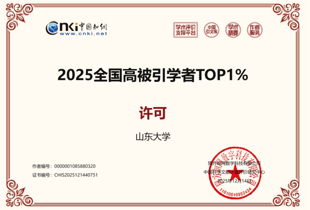 许可副教授表现突出,继2024年后,连续第二年入选高被引学者TOP1%。为我校工商管理学科(含专业学位)TOP1%的14位入选者中最年轻入选者。