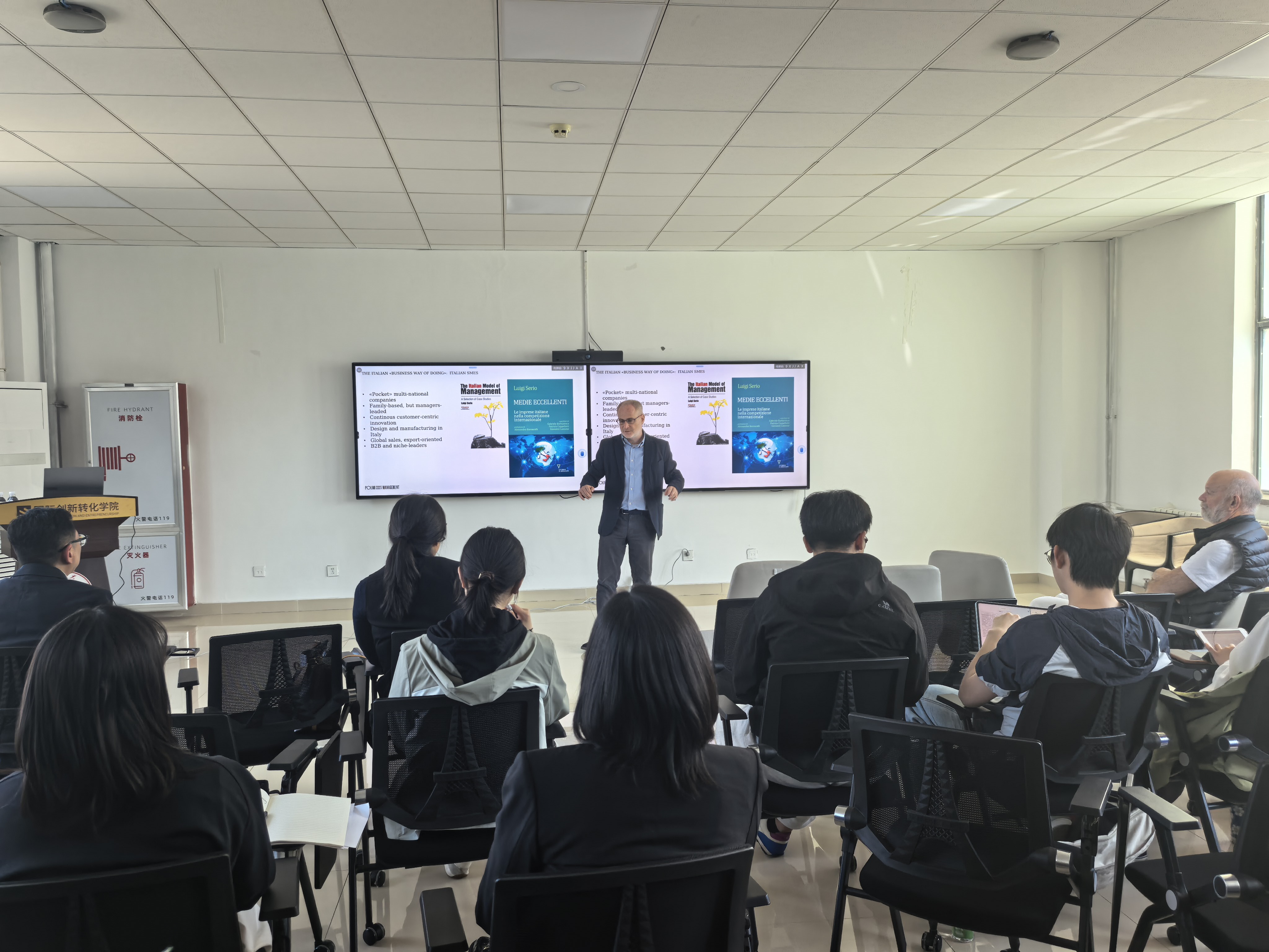 做题为“The Italian way to business: uniqueness, digitalization, circularity and sustainability”的讲座,讲座由学院院长助理卢翠翠副教授主持,学院副院长乔岳教授、剑桥大学企业中心前首席执行官Tony Raven教授、学院师生代表共同出席本次讲座。